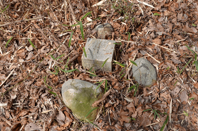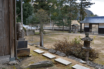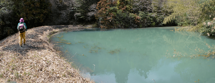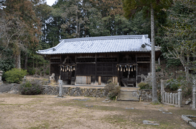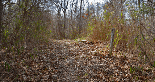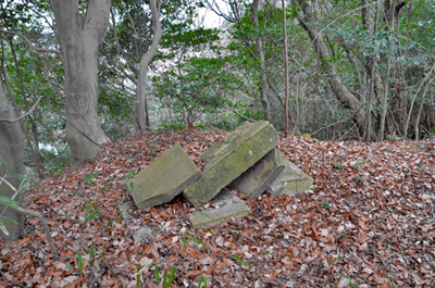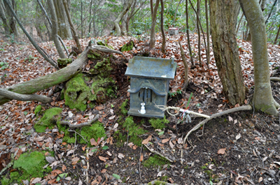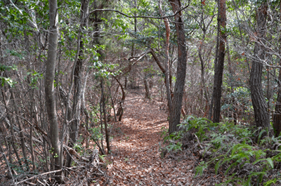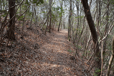 | 二万五千分の一の地図で、三木市の北部をカバーする「天神」を眺めると、山のことよりもゴルフ場の多さが目に付くが、その中にあって山名の付く山が少ないながらもあり、石上山がその一つだった。石上山については「播磨 山の地名を歩く」に紹介されており、その山頂の三角点は二等三角点だった。ただ地形的に見ると山と言うよりも丘陵のピークと言って良さそうだったが、二等三角点探しでもするかの気持ちで訪れることにした。コースとしては北西麓側の口吉川町東地区より破線路が地図に描かれていたので、それを辿ることにした。向かったのは2014年3月の第2土曜日で、楽に現地に着こうと山陽自動車道を走った。三木東ICで降りた後は、県道85号線、県道20号線と走って口吉川町に入った。上空は雲の多い空だったが、青空もあって悪くは無かった。美嚢川に架かる東栄橋を渡って地図で破線路が描かれいる辺りまで来たものの、どこから取り付いてよいのかよく分からなかった。そこで改めて地図を開いて、少し離れているが神社記号の付いている辺りから尾根に出ることにした。神社を目指したのは駐車地点にしたい考えもあってだが、着いてみると神社は衣笠神社で、古色蒼然たる神社だった。ねらい通りに境内に車を入れることが出来たので、境内の一角に駐車とした。神社のそばを通る舗装路はその先の蓮花寺へと通じているのだが、それとは別に未舗装の林道が神社の北側から始まっていた。それをまずは歩いて行くことにした。小さな溜め池のそばを過ぎると山道になり、自然と尾根端に取り付いた。その先も登山道は続いており、目印テープも付いていた。緩やかな尾根で、雑木林の雰囲気は悪くなかった。ときおり小さな祠を見かけたりもした。そして現れたのが送電塔だった。姫二火力線115番鉄塔で、そこからは山頂方向が眺められて、そちらに向かって送電線が走っているのが分かった。山道が巡視路と分かったことで、そのまま歩けばどうやら山頂に立てそうだった。その先は巡視路のままに歩くことにした。次の送電塔は東向かいの支尾根上にあるのだが、巡視路は大回りをして尾根上を続くものと思っていたところ、少し先で鞍部へと下ることになった。鞍部へ向かうと言うよりも麓に下りると言った方が正しく、溜め池のそばへと下り着いた。当然集落側からの道も来ており、その溜め池からハイキングを始めても良かったようである。巡視路は溜め池の縁を巡って、竹林の中へと入った。斜面を登るようになると竹林は雑木林へと変わり、尾根に出た所で次の送電塔と出会った。姫二火力線116番鉄塔だった。再び尾根道を歩くようになって東へと向かうが、尾根はごく緩やかで何とも気楽なハイキングだった。こんなに楽に歩けるとは思っていなかっただけにうれしい誤算だった。次の送電塔は姫二火力線117番鉄塔で、その先はいっそう平坦な尾根となり、この日一番の歩き易さだった。雲の多かった空はいつのまにか青空の方が多くなっており、良く陽射しを受けるようになった。その平坦な尾根を歩いていると右手前方に小さなピークを望めるようになった。それが山頂のようだった。その山頂に向かって尾根は右折れとなり、程なく巡視路は二手に分かれた。一つは東の方向に延びており、山頂への道は西へと戻る形だった。右手の山頂への道に入ると、すぐに山頂に着いた。そこは少し高くなっている程度だったので、単なる通過点の雰囲気が無きにしもあらずだったが、そこに二等三角点(点名・中里)があるのを見ると、やはり一つの山頂に立っているとの思いを持つことが出来た。その石上山の山頂で昼食とした。そこは全く展望は無かったが、雑木に囲まれた雰囲気は悪くなかった。一応山頂に立ったことでこの日の目的は達したことになり、これで下山することにしたが、その前に近くの送電塔に立ち寄ってみることにした。少しは展望が得られるのではとの期待からだった。南西方向へと緩やかに下ると、送電塔が見えてきた。着いてみると僅かながら展望があり、南西方向に雄岡山と雌岡山の並ぶ姿が眺められて、少しは希望が叶えられたようだった。ところで送電塔は姫二火力線119番鉄塔だった。そこに着く手前で姫二火力線118番鉄塔への巡視路が分岐しているのを見ていたので、そちらへ歩けば姫二火力線117番鉄塔に戻れそうに思えた。そうなると周回で歩けることになる。当初は山頂に戻って別の尾根で麓に向かう考えだったのだが、周回で歩いてみたくなった。そこで分岐点まで戻って姫二火力線118番鉄塔を目指した。巻き道を歩く感じで西の方向へ歩くと、10分ほどで姫二火力線118番鉄塔に着いた。そこはこの日一番の展望地と言ってよく、南東方向に丹生山系の尾根がすっきりと眺められた。そのまま巡視路を辿れば、次は姫二火力線117番鉄塔となるのだが、そこへは一度鞍部へと下ることになった。その鞍部まで30mほど下ると溜め池が現れた。その溜め池