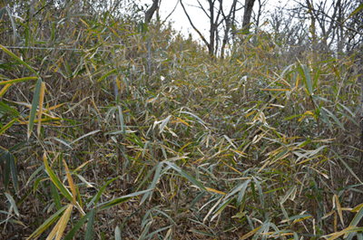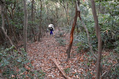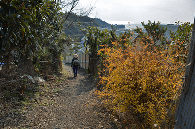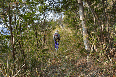 2015年の大晦日は室津漁港に出かけた。正月を前にして漁船に大漁旗が揚がっている風景を見るためだった。友君橋に入って漁港が見えてくると、期待通りに多くの船で大漁旗が掲げられているのが眺められた。友君橋を下りた先で現れた駐車場に車を止めると、まずは大漁旗の揚がる室津漁港をいっとき散策した。そして山上で昼を過ごそうと嫦娥山に向かった。友君橋を今度は徒歩で登って国道250号線に出ると、国道沿いに続く歩道を北へと歩いて屋津坂に向かった。この日に歩いたコースはこれまでにも何度か歩いたコースなので、下の写真帳をご覧願いたい。概略は往路としてまずは屋津坂を歩いたが、この日は途中から枝道に入って、その枝道で室津街道に出た。そして室津街道を鳩が峰の近くまで歩いて鳩が峰コースに合流すると、鳩が峰コースで山頂を目指した。その鳩が峰コースは前回歩いたときよりもシダが茂っており、一部は全くのシダヤブになっていた。山上に出ても、そこもまた笹ヤブ状態で、どうも嫦娥山は登山対象にはされていないようだった。予定通り嫦娥山の山頂で昼を過ごすと、下山は南尾根コースを下った。こちらも始めはササが茂っていたが、ウバメガシ林に入ると、以前の感じで下って行けた。その南尾根コースも麓が近づいて竹ヤブに入るので、やはりハイキングとしては向いていないようである。竹ヤブを抜けると住宅が現れ、そして国道250号線を横切ると、室津の家並みへと入って行った。 (2016/1記)(2020/9改訂)(2025/10写真改訂) |