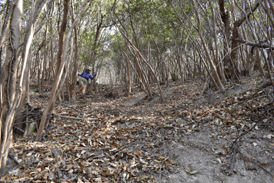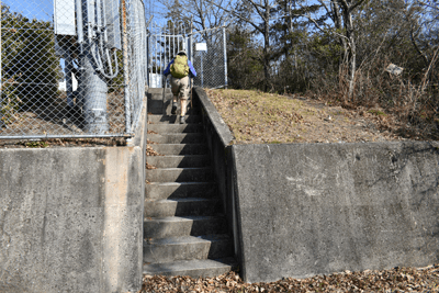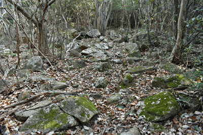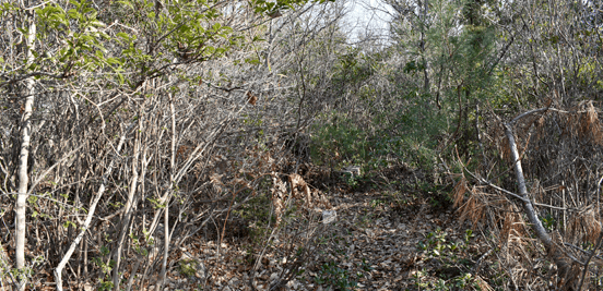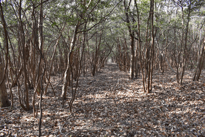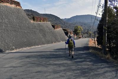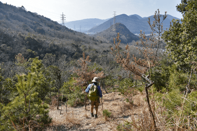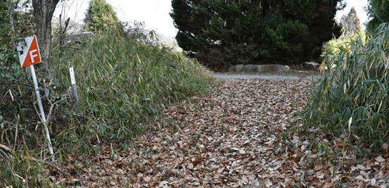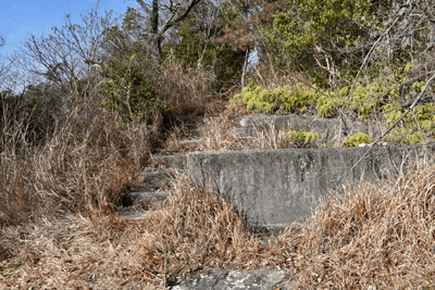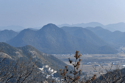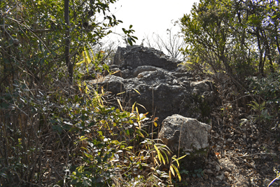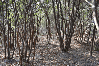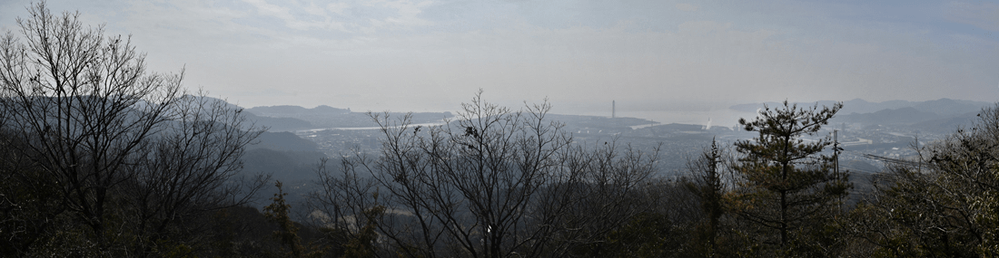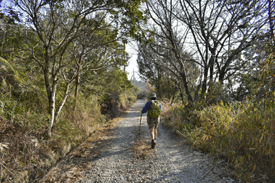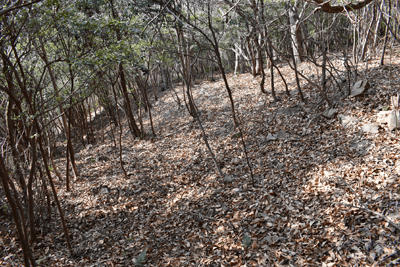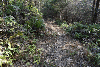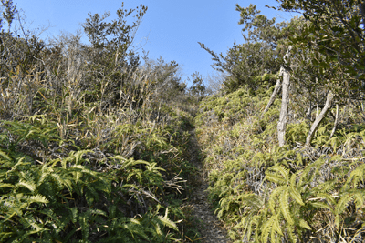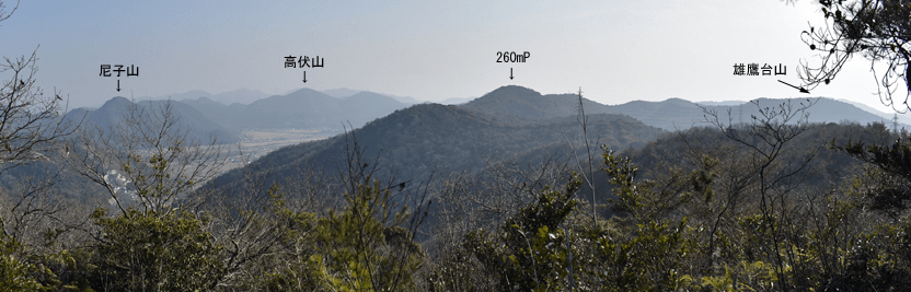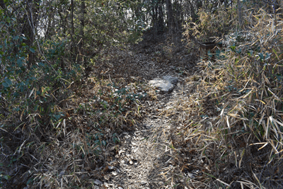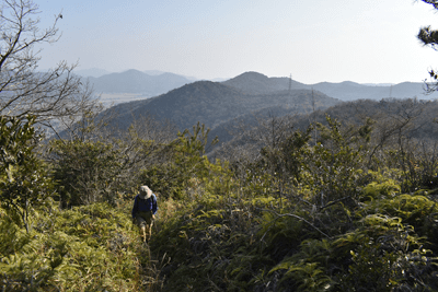 | 赤穂市の高山は山頂まで車道が通じているので、登山対象と言うよりも散策向きの山だが、地図を見ると高山の山頂から西の急尾根に破線路が描かれているのを見たとき、周回で歩くことを思い付いた。向かったのは2026年1月の第3金曜日のこと。この日は兵庫全域で快晴の予想だった。赤穂市へは国道2号線を走って向かったのだが、北の山並みは何とも薄ぼんやりとしていた。どうやら黄砂が飛来しているようだった。赤穂市街に入り、ナビに従って高山への車道へとスムーズに入った。高山の中腹は広い範囲で墓園になっており、地図ではピクニック公園の名が付いていた。その公園の駐車場に車を止めたが、その駐車場の名は赤穂高山墓園駐車場だった。その辺りで既に標高は130mだったので、山頂との標高差は170mしかなかった。その山頂まで車道が通じていた。まずは舗装された車道歩きでスタートした。舗装路は途中で砂利道に変わったが、ずっと緩やかな上り坂だった。木々の切れ目が現れると、そこからは赤穂市街の方向が望めた、但しすっかり黄砂の視界で、ただ薄ぼんやりと見えるだけだった。尾根道に合流すると標識が立っていた。一帯で伐採作業が行われているようだった。西へと進んで行くと、最初の電波塔が現れたとき、そこから山道が分岐しているのを見た。その山道を歩いて山頂に向かうことにした。少し進むと尾根筋を歩くようになり、背後を振り返ると黄砂の視界の中に尼子山を見た。山頂が間近になると、左手に小径が分岐していた。その小径が気になったが、まずは山頂を目指して直進した。僅かな距離で三角点ピークのそばに出た。そこは車道の終点位置であり、右手の三角点ピークにはNTTドコモの電波塔が建っていた。電波塔への階段を登ると、電波塔のそばに三等三角点(点名・高山)を見た。展望の無いピークとあってすぐに車道に戻った。そのとき山頂手前で分岐していた小径がどうも気になり、最高点ピークに立つ前に、その小径を探ることにした。展望地がありそうな気がしたためだった。そこで引き返して小径に入ると、期待通りにすぐに岩場の展望地が現れた。ただ岩場に上がってみると、前方に赤穂市街の風景が広がっていたが、その展望は黄砂で台無しだった。改めて最高点ピークに向かった。僅かな距離で最高点ピークに着くと、そこにも電波塔が建っていたが、三角点ピークと同様に木々に囲まれて展望は無かった。その電波塔の西の位置より破線路が始まっているはずなので、電波塔のフェンスを回り込んで西側に出ると、細々とした小径を見た。それを辿って西麓側に下ることにした。西斜面はすぐに急斜面にとなったが、小径は続いていた。急斜面とあって木々に捕まりながらの下りだった。そのまま麓に出られると思っていたのだが、急斜面の途中で小径は不確かになってしまった。そうなると歩き易い所を探りながら下った。下った後のピクニック公園に戻るルートは、沢筋の破線コースを考えていた。そこで出来るだけ沢がある左手の方向、南西方向へと下った。シダヤブに突っ込みそうになると、そこは迂回した。そして沢筋が近くなったとき、いきなりと言った感じで開けた所に出た。間近を山陽道が走っており、北西には黒鉄山が見えていた。その展望地で昼休憩とした。気温は18℃まで上がっており、すっかり春の陽気だった。その展望地から沢筋までは、細々とした小径が通じていた。沢筋に出ると、はっきりとした山道に合流した。後は山道を歩いてピクニック公園に向かった。山道は巡視路のようで、途中で送電塔(南赤穂赤穂線3番)に出会った。その先もはっきりとした道が続き、最後は舗装路に合流した。合流点から駐車場までは5分の距離だった。 (2026/2記) |