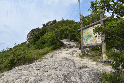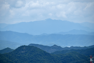 (天気) | スタート時は薄曇り。山頂で休むうちに薄晴れとなり、陽射しの広がることもあった。麓の気温は30℃で、山頂は29℃だった。ほのかな涼しさを感じる風を受けた。。視界は少しうっすらとしていた。 | ||