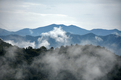 (天気) | 曇り空。山頂の気温は25℃ほどだった。風はほとんど無し。視界は悪くなかった。山頂を離れる頃より小雨が降り出した。以後は小止みになるときもあれば、強く降るときもあった。 | ||