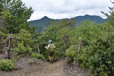 (天気) | 曇り。雲の色は黒かった。山頂の気温は27℃。少し蒸し暑さがあった。ときおり涼しい風を受けた。曇りながら視界は澄んでいた。 | ||