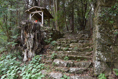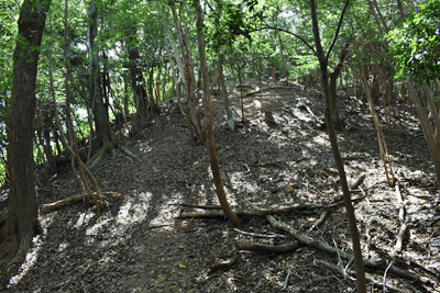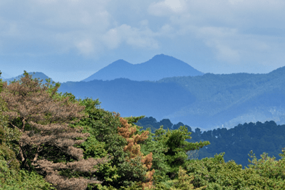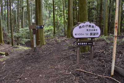 | (天気) | 雲の多い晴れ。大手道を登っているときは陽射しの下が多くあり、気温は27℃だった。山頂はほぼ木陰になっており、気温は21℃。風は僅かにあり涼しかった。視界は澄んでいた。 | ||