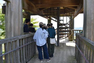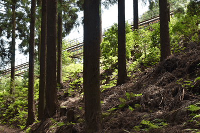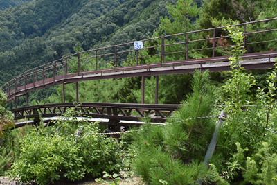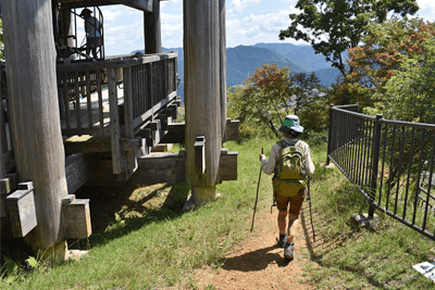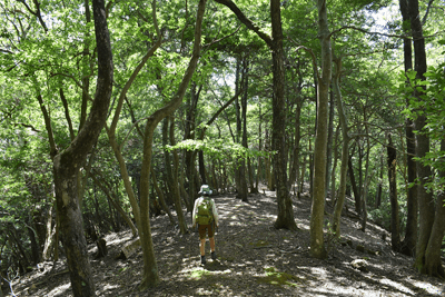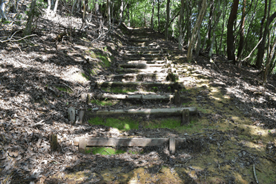 | 2025年も9月に入って国見山を登りたくなった。3年連続の9月登山だった。今回は定番コースと言える2番コースを登ることにした。10時に国見の森の駐車場に着くと、三連休とあってか、既に多くの車が止まっていた。始めに林道を横切って植林地の斜面を登る所は、迂回路が正式コースになったのか、プラ階段で整備されていた。迂回コースが本コースに合流すると、ほぼ木陰の道を登って行けた。植林地もあったが多くは自然林に囲まれた道で、それもつづら折れになっているので易しく登って行けた。七本松休憩所の位置でモノレールと接すると、尾根筋を離れて東へと巻き道に入った。緩やかに下って沢筋を越すと、南面側から山頂に向かった。コース中で一番足を使う所で、長い階段道だった。その階段が緩むと程なく階段は終わり、自然林の中の優しい道となった。道そばに幾つかベンチを見たが、どのベンチも老朽化で倒れていた。一度小休止をとり、最後の登りにかかった。右手から金谷コースが合流すると、山頂まで100mだった。害獣避けゲートを通ると、一気に陽射しを受けることになった。展望台が間近に見えており、子供の歓声が聞こえた。その山頂に建つ展望台に着いたときは、歩き始めてから57分が経っていた。展望台には数組のファミリーがおり、賑やかだった。モノレールに乗ってこちらに来たようだった。この国見山で期待したのは山上で受ける涼しい風だったが、風は少しあるものの涼しさは少なかった。それでもときおりは十分に涼しいと思える風を受けた。休むうちに誰もいなくなることがあったが、またモノレールが到着したのか新たなハイカーが来て賑やかになった。一息つけると、当然展望を楽しんだ。視界はまずまず良く、うっすらとながら瀬戸の島が眺められた。この日も山頂に立つのが目的だったので、山上の遊歩道を散策するようなことはせず、70分ほどの休憩を済ませると、往路コースを戻った。ゆっくりと木陰の登山道を下ると、44分で駐車場に戻ってきた。まずは安定の国見山登山を楽しめたと言えそうだった。 (2025/10記) |