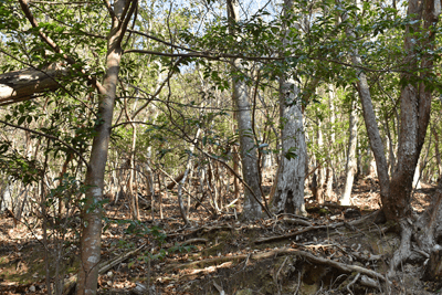 | (天気) | 快晴。朝の樹林帯の気温は5℃。山頂に着くと10℃まで上がっていた。風は弱く吹く程度で、冷たさは少なかった。視界は悪く無かったが、北の方向はうっすらしていた。その北の視界も徐々に良くなってきた。 | ||