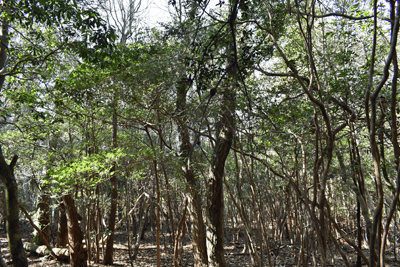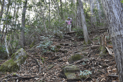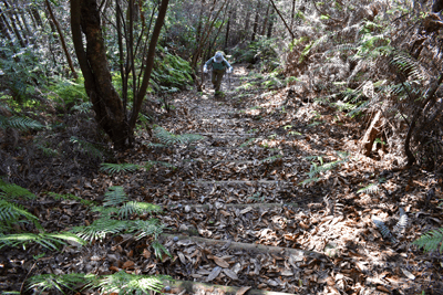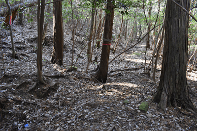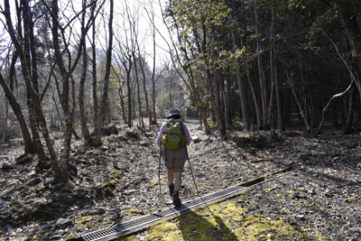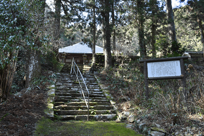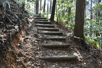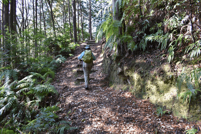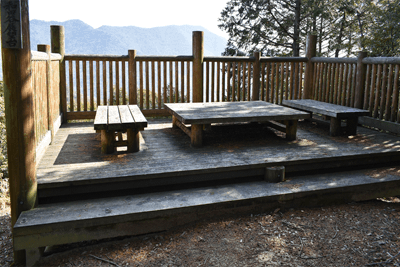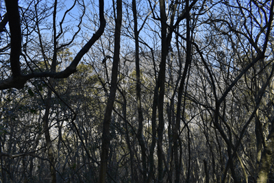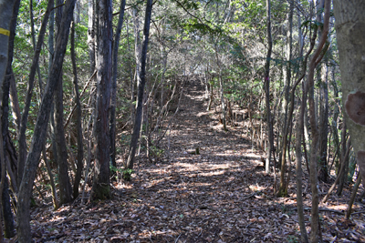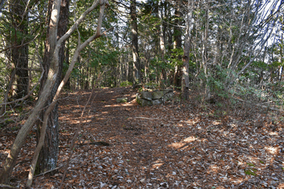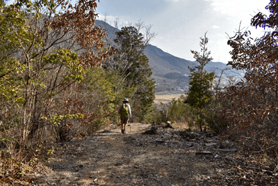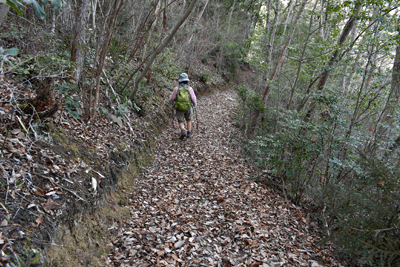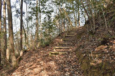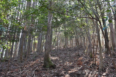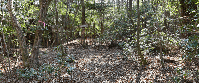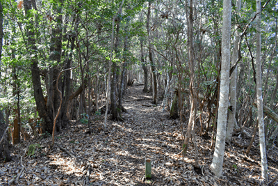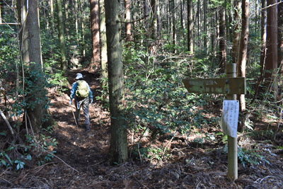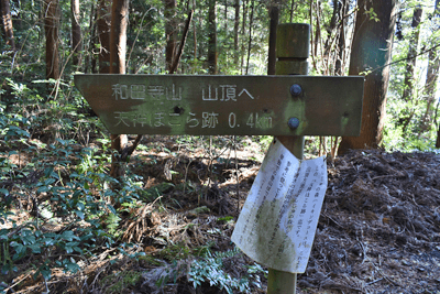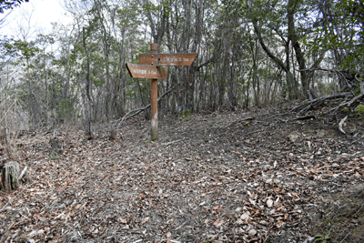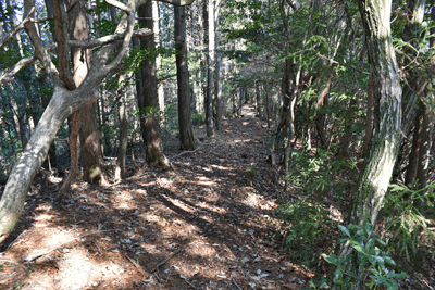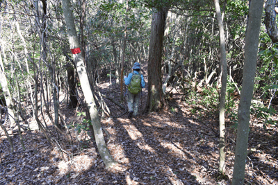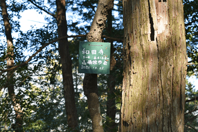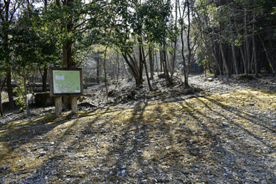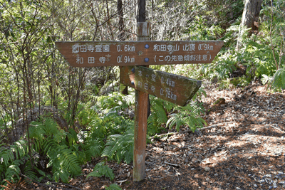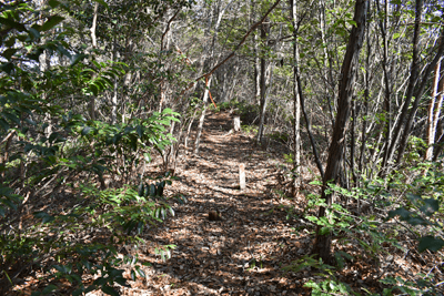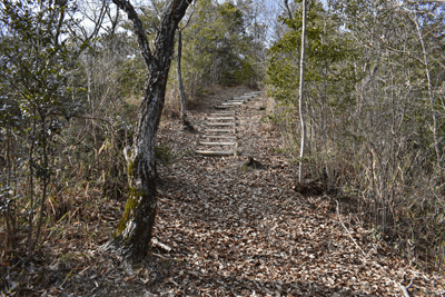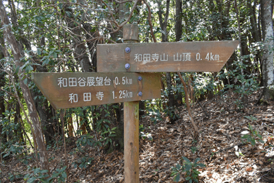 | 二度目の和田寺山は26年後となる2026年2月の第二金曜日のこと。国道372号線を走って丹波篠山市に入った。快晴の空ながら視界はうっすらしており、春霞と言えそうだった。上小野原交差点で国道を離れると、県道292号線を南下した。そして東側から和田寺山に近づいた。東麓側は広い範囲で和田寺霊園になっており、管理事務所前の案内図を見ると、P−5駐車場の位置から和田寺山への登山道が描かれていた。そのP−5駐車場を目指すと、案内図の位置はP−6駐車場で、そこに車を止めた。駐車場の一角に登山口標識があり、登山道へと入った。ゆったりとした道で、スムーズに歩いて行けた。途中から急坂となり丸太の階段が続いたが、雰囲気としては遊歩道歩きだった。尾根に合流すると、そこは天神ほこら跡の位置だった。後は山頂まで尾根筋に続く登山道を歩くことになった。尾根に出てすぐの413mピークでは四等三角点(点名・和田寺)を見た。緩やかな尾根道だったが、展望の現れることは無かった。ただ雑木林の風景を眺めながら歩いた。538mピークを越えて平坦な山頂の一角に近づくと、左手に小径が分岐した。その左手の道が山頂に通じる道だった。その山頂への道に入っても登山道は緩やかなままで、単に樹林帯を散策している感じのまま和田寺山の山頂に着いた。そこは樹林帯の真っ只中と言えそうで、展望は皆無だった。山頂からは西麓に向かう「ぬくもりの郷」への道と、東麓に向かう「立杭方面」への道が始まっていた。立杭コースに入ると、すぐにコースは二手に分かれた。右は上立杭への道で、左は和田寺霊園への道だった。次の目標は和田谷展望台だったので、霊園に通じる道に入った。その道が途中から急坂続きとなった。おおよそ150mほど急坂が続くことになり、展望台が近くなって漸く登山道は緩やかになった。展望台に着くと、そこにはベンチだけでなくテラスも作られており、絶好の休憩ポイントだった。テラス内のベンチに座って、陽射しを受けながら昼休憩とした。前方で大きく尾根を広げる虚空蔵山を眺めながらだった。20分ばかりの休憩を終えると下山に移った。展望所の位置で道は二手に分かれており、墓園に近づける道と和田寺の本堂に向かえる道だった。そこは本堂への道に入って下りを続けると、本堂に近い位置に下り着いた。本堂に立ち寄ると、そこから10分ほどで駐車地点に戻ってきた。これで和田寺山登山は終了となったが、和田寺霊園の周辺には和田谷展望台の他にもう一つ展望台があった。それは小丸山の山頂に建つ展望台で、そちらにも立ってみることにした。和田寺霊園には幾つも駐車場があり、小丸山コースに一番近い位置の駐車場に移動して、そこから遊歩道歩きを開始した。小丸山へのコースは東回りコースと西回りコースがあって周回で歩けるようだったが、小丸山展望台に立つのが目的だったので、易しい東回りコースをピストンすることにした。幅広の遊歩道を歩いて行くと、13分ほどで小丸山のピークに着いた。そこには屋根の付いたテラスがありベンチも置かれていた。小丸山展望台からは北の方向が眺められて、白髪岳と松尾山の並ぶ姿を見た。和田寺山の展望の無さは二つの展望台に立ったことで解消され、すっきりとした気分になって駐車場へと戻った。 (2026/3記) |