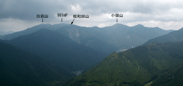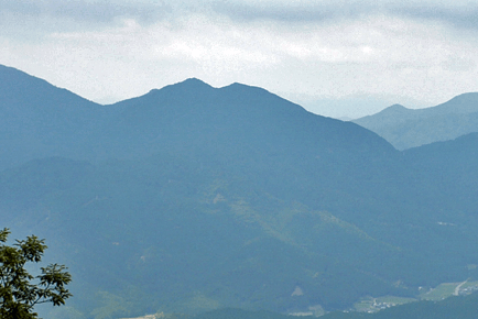 この日は高坂峠から縦走路を歩いて、入相山を越して笠形山まで歩く予定だった。ところが神崎町が近づくと、雲が増えてきた。神崎町の高い山にはガスさえかかっていた。それでも天気が良くなる気配はあったので、予定通り高坂峠に向かった。車は旧県道8号線に入って高坂峠まで進めたかったが、まだ新車だったためアクシデントを避けて高坂トンネルを抜けた先の駐車スペースに車を止めた。そこは以前は「松が井の水」の取水場だった所だった。駐車地点から旧県道8号線の合流点までは10メートルほどの距離だった。旧道は舗装された林道と言えそうな趣があった。その緩やかな道を登って行く。車の轍を見たが、峠までの中間地点にあるもう一つの「松が井の水」が目的ではと思われた。20分少々歩いて高坂峠に着いた。上空を見ると、天気が回復する気配は無くなっており、逆に雲は厚くなっているようだった。笠形山の方向を見ると、ガスはずっと低い位置まで下りていた。どうやら笠形山はガスに包まれていると思えた。そこで高坂峠から縦走路には入らず、峠の位置から分岐する林道を歩いて、空模様の変化を見ることにした。最悪は入相山のみで止める気持ちも起きてきた。その林道は作業道程度のもので荒れていた。ほぼ平坦だったが、何カ所かで崩壊があり、土砂が路上に滞積していた。車の通行は無理と思えた。その荒れ道を20分ほど歩くと、立派な舗装路に合流した。広域基幹林道笠形線だった。その基幹林道を歩き出すも縦走路からはかなり離れており、しかも山襞なりに作られていたのでくねくねしていた。合流してからは少し下り坂でもあった。これでは笠形山へは遠回りしていることになるし、上空はすっかりガス雲だった。これでは入相山もガスのように思われた。もうこの日の登山を中止しようかとさえ思ったが、入相山だけでも山頂を踏むことに予定を切り替えた。丁度その地点より主稜線へと続く支尾根が見えたので、それに取り付くことにした。支尾根には小径が付いており、けっこう気楽な登りだった。ただこの日の湿度は高く、大いに汗をかいての登りだった。小径は入相山には向かわず北の方向に延びていたので、むしろ高坂峠に戻る方向に歩いた。そのため遠回りで入相山に向かうことになった。登りきって主稜線に合流すると、縦走路に出会った。その辺りはうっすらガスが漂っていた。やはり入相山もガスのようだった。山頂での展望はすっかり諦めて、とにかく入相山を目指した。縦走路は荒れた所はなく、至って歩き易かった。まずは無難に山頂に到着した。山頂はガスがかかったり消えたりで、ガスが立ち込めることは無かった。9年ぶりの山頂は相変わらず雑木に囲まれており、北東方向に僅かに切れ目があるだけだった。休むうちにガスはほぼ消えたが、全体にモヤの強い視界で、妙見山がうっすら見える程度だった。展望は諦めて、昼食の後は昼寝と決め込んだ。ただ入相山の山頂を目指した気持ちの中に、前回以上の展望を得たい思いがあったので、一眠りした後は展望を探るため尾根を北へと辿ってみることにした。相変わらず歩き易い縦走路だった。北東隣のピークを越し、その先で展望地が現れた。それは西の方向で。南西に障子場から北の飯森山まで広く眺められた。西の方向は東の方向よりもモヤは少なく、まずまずの視界だった。ガスは遠方の山並みにはかかっていたが、白岩山は見えていた。その眺めに接して、少しはこの日の登山に満足することが出来た。帰路はそのまま縦走路を辿って戻った。縦走路は662mピークから先は稜線から離れて西側の斜面に付いていた。旧県道に出ると、後は旧県道を歩いて駐車地点へと戻った。