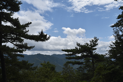| (天気) | 上空は晴れたり曇ったりだった。山頂の気温は21℃。風は十分な涼しさだった。北の空は雨雲が広がっており、北からの風にはときおり雨粒が混じっていた。下山を始めた頃は、上空は青空が多かった。陽射しが広がることもあった。 | ||