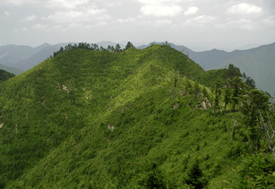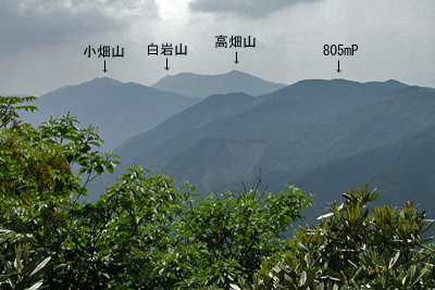 | <登山日> | 2001年6月9日 | 9:14スタート/9:53林道分岐点/11:01〜11[800m]ピーク/11:26〜12: 54[846m]ピーク/13:06〜45[850m]ピーク/15:22林道出合/15:43エンド。 | |