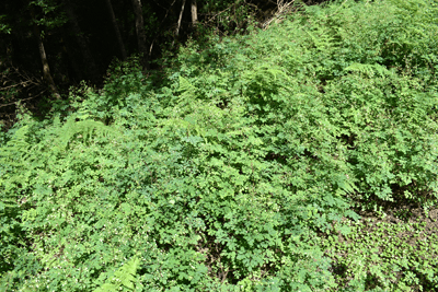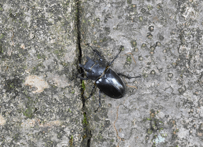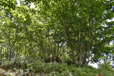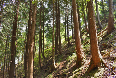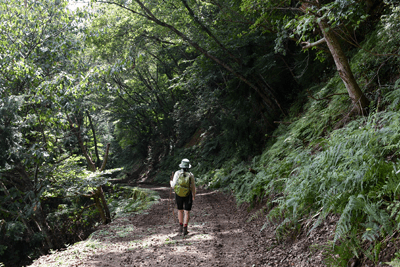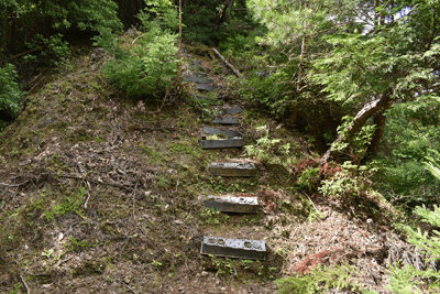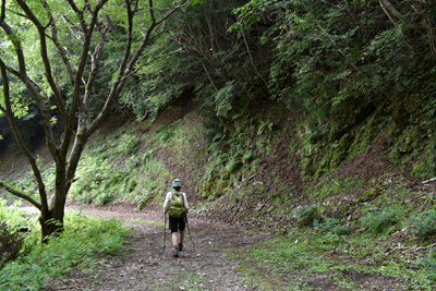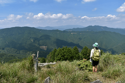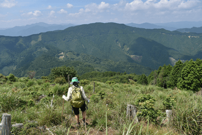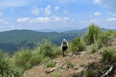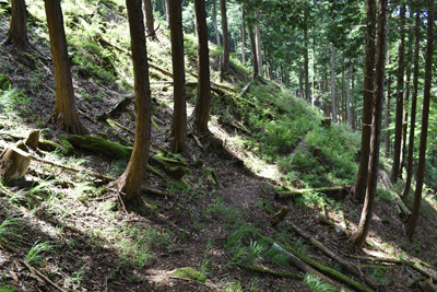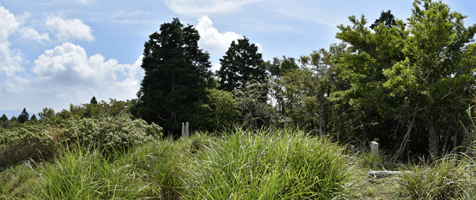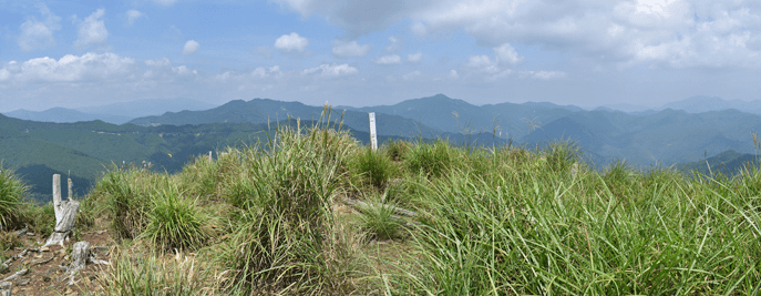 2025年は8月の中旬に涼を求めて氷ノ山を登った。期待通りの涼しさがあり、翌週の22日も同じ考えで千メートル峰の黒尾山を登った。こちらも山頂で涼しさを味わえた。そこで8月の最終週も再度千メートル峰を登ろうと一山を目指すことにした。向かったのは29日のこと。最短コースで登ろうと阿舎利林道の登山口からスタートすることにした。 阿舎利集落に着くと、寂しいことにほぼ無住状態になっていた。その集落内に太陽光発電設備が新たに作られていた。集落を抜けるとそのまま阿舎利林道となり、標高850mにある林道登山口を目指した。林道は災害復旧作業や伐採作業が行われており、関係車両を何度か見かけた。林道登山口に着くと、そこにも2台の重機を見た。そこより支林道が分岐しているのだが、駐車地点は阿舎利林道を今少し進んで、路肩が広くなっている所とした。分岐点までは1分の距離。支林道に入ると路面が荒れていた。どうやら近くで伐採作業が行われているようで、頻繁に重機が行き来した結果と思われた。程なく重機のための作業道が右手に分岐すると、そこから先は以前のままの易しい林道となった。ほば平坦で、周囲の自然林を眺めながら歩いた。その支林道は終点位置の手前で崩壊箇所があるのだが、そこに着いてみると手直しはされておらず崩壊したままだった。その崩壊地を越して支林道の終点位置に着いた。支林道入口登山口から18分だった。終点位置は二つ橋コースとの合流点で、そこから尾根道歩きを開始した。雑木帯の尾根を登って行く。少しずつアセビが増えているようだった。傾斜がきつくなって右手にイワヒメワラビが群落となっている所を過ぎると、左手へと巻き道に入った。植林地に入り、その途中で山頂方向へと斜面を登った。雑木帯を抜けてカヤト地に出ると、一気に陽射しを浴びることになった。そこでコースは気にせず近くの雑木林に入って日陰を歩いた。その雑木林が途切れると、カヤト地を横切って植林地に入った。その植林地は登山コースでもあったが、そこも歩き易い所を探りながら登った。その植林地も抜け出ることになり、またカヤト地を歩いて陽射しを浴びながら山頂に到着した。カヤトとアセビが点在する山頂風景は以前とあまり変わっていないようだが、いくぶんアセビが増えているように思われた。展望は相変わらず良かったが、この日は少しうっすら感があった。すぐに山頂の木陰に入って休憩とした。その木陰は期待通りの涼しさがあった。気温は24℃。絶えず涼しい風が通っており、涼しさを楽しみながらの休憩だった。その休んでいるとき、目の前の木に止まっていたクワガタムシがどんどんこちらに近づいてきたのが珍しかった。昼食を済ませると、暫し山頂展望を楽しんだ。うっすらとは言え山並みを隠す雲は無く、氷ノ山は姿を現していた。山頂で休んでいたのは1時間分ほど。下山は往路を戻るのみ。カヤト地は登山コースが分かり難くなっていたが、カヤト地を過ぎて巻き道まで下りてくると、後はスムーズだった。登山道のままに歩いて林道終点位置へ。後は支林道を歩いて駐車地点へと戻って行った。休憩時間を入れても2時間で終了し、暑い季節には手頃な登山となった一山だった。 (2025/9記) |