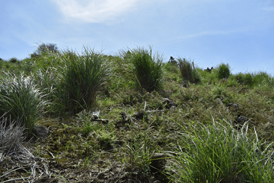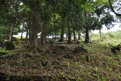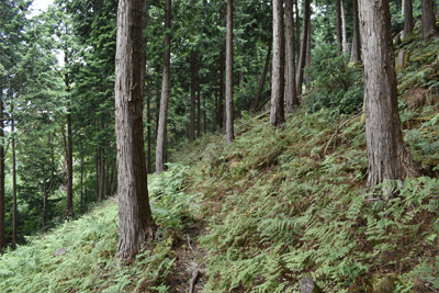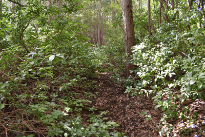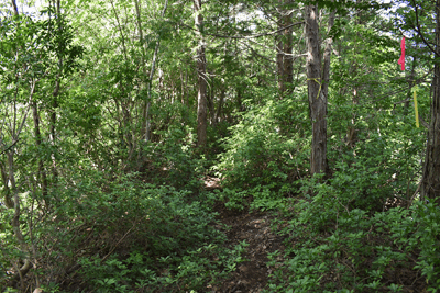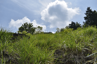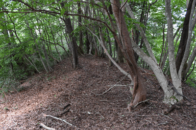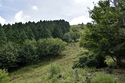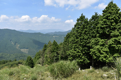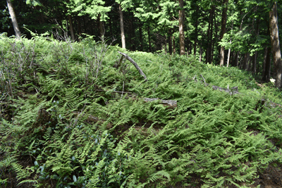 (天気) | 晴れ。林道の気温は27℃。山頂の木陰の気温は24℃だった。涼しい風あり。視界はうっすらしていた。 | ||