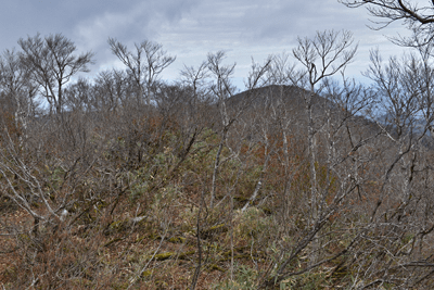| (天気) | 始めは雲の多い晴れだったが、登るほどに雲は増えてきた。途中からはすっかり曇り空となった。山頂に着いても、どんより曇り空だった。山頂の気温は10℃。風は無し。視界は悪くなかった。山頂で休むうちに青空が広がってきた。雲は多かったが、晴れと呼べるまでになった。視界は更に良くなってきた。 | ||