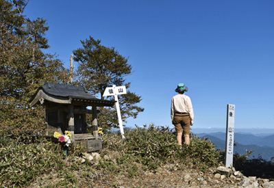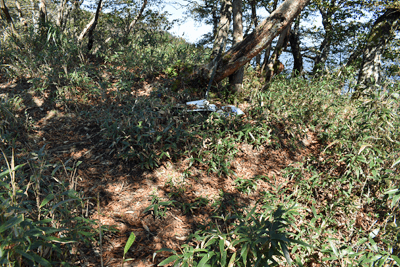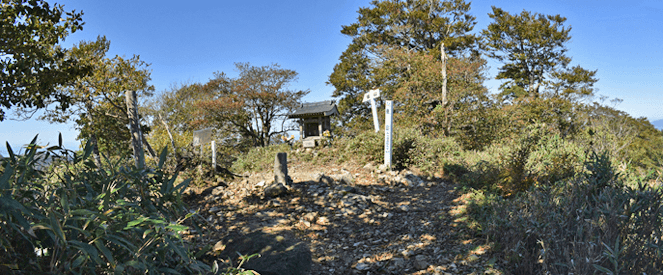 | (天気) | 快晴。上空に雲は無く、澄んだ青空が広がっていた。山頂の気温は16℃。少し風があり、爽やかな風だった。視界は澄んでいた。おごしき山の山頂は18℃。快晴はずっと続いて、下山を終えても少し雲を見る程度だった。 | ||