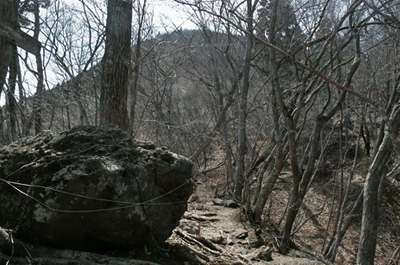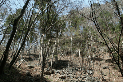 (天気) | 午前の青く澄んだ空は、午後に入ると薄晴れとなっており、風景は白っぽく平板になっていた。少しモヤがかかった風にも見え た。気温は14℃ほど。弱く吹く風に冷たさがあった。下山を終えた頃には、薄曇りの空に変わっていた。 | ||
