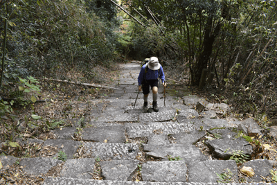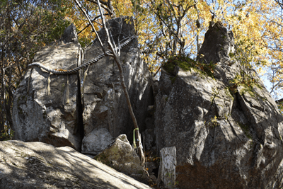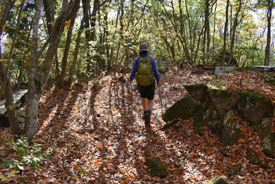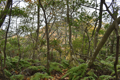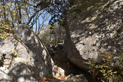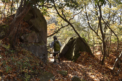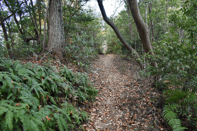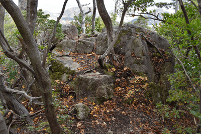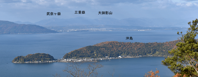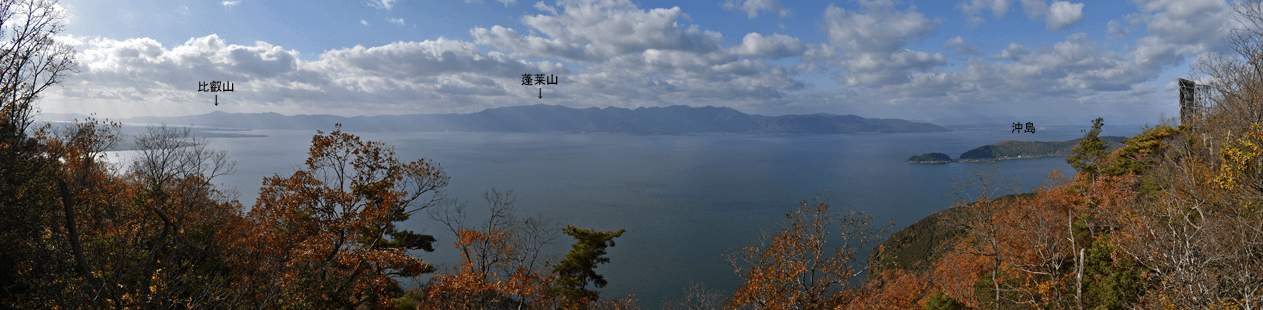 | 琵琶湖を眺められる山として「新・分県登山ガイド 滋賀県の山」から選んだのが、奥島山だった。ただ奥島山の名は一帯の山の総称のようで、地元では津田山と呼ばれているようだった。その津田山を長命寺山とのセットで登ろうと向かったのは、2025年11月の下旬のことだった。この日の滋賀県の天気予報は南部は晴れで。北部は曇りだった。名神高速道を竜王インターで降りると、琵琶湖へと北上した。上空を見ると見事に二分していた。上空を境に南は良く晴れており、北は薄黒い雲が広がっていた。残念なことに津田山は曇り空の下だった。長命寺は長命寺山の中腹にあり、その南麓に着くと、茶屋があり駐車場もあった。長命寺へは車道で行くことも出来るが、麓から歩きたく南麓駐車場に車を止めた。但し茶屋の前ではなく少し離れた位置とした。茶屋の前を通ると、長命寺への石段が始まった。標識では808段とあった。段差が大きいため、足に負担がかからないようゆっくり登った。15分ほどで長命寺に着くと、そこは古刹の雰囲気が十分にあり、参詣客が散見された。その頃には少し青空を見るようになっていた。陽射しを受けることもあったが、すぐに雲が広がって陽射しは消えた。その長命寺の一番高い位置に太郎坊大権現があり、そこから登山道が始まっていると思っていたのだが、登山道は無かった。地図をよく見ると、車道の位置から破線路は始まっていた。そこで車道に出てその破線路が描かれている位置に来たものの、登山口は無かった。ただ僅かな踏み跡を見たので、そこに取り付いてみると有刺鉄線が現れた。その鉄線が広げられて人が通れるようになっており、そこを通った先で登山道に合流した。後で分かったことは、車道を今少し下った位置に登山口があり、そこから今合流した登山道が始まっていたのだが、そのときは知る由もなく、怪訝な気持ちで登山道歩きをスタートした。はっきりした登山道でスムーズに歩けるのは良かったが、右手にロープが現れることがあり、立入禁止の紙が付けられていた。どうやら登山道から長命寺へのエリアに入ることは禁止のようだった。樹林に囲まれた登山道を登って行くと、登山道が二手に分かれた。直進の道は休暇村への道で、そちらに津田山の名もあったが奥島山の名は無かった。右手に分岐したのが長命寺山コースで、その長命寺山コースに入った。緩やかな斜面を登ると、僅かな距離で長命寺山の山頂に着いた。道中と同じくすっかり樹林に囲まれていた。三角点は無く、ただ山名標識を見るだけだった。登山道はその先も続いており、そのまま津田山コースに出られるのではと歩いてみると、大岩が現れて登山道はそこまでだった。ただそこには少し展望があり、これから向かう津田山がすっきりと眺められた。引き返して登山道の分岐点まで戻ると、津田山コースに入った。長命寺山を巻く形で歩き、鞍部へと緩やかに下った後、津田山への登りが始まった。その頃には天気ははっきり良くなっており、青空が広がろうとしていた。登るほどに周囲は紅葉した木が多く見られて、木々は陽射しに明るかった。特に急坂になることも無く登りが続いて、山頂が近くなると大きな岩の間を登ることがあった。山頂に着くとそこは平らに開けており、祠が置かれていた。御神酒が供えられており厳かさがあった。またそこより少し離れた位置に三等三角点(点名・津田)を見た。ガイドブックでは山頂より今少し北の位置に展望の良い大岩があるようだったので、そちらに歩いてみた。ところがそれらしき大岩が現れぬうちに下り坂になってきたので、山頂へと引き返した。その展望に関しては山頂手前で「空奏テラス」の標識を見ていたので、その展望地に向かった。標識が示す方向へと歩くと、名の通りに大きな岩場のテラスが現れて、その上に立つと一気に展望が広がった。足下は琵琶湖が広がり、正面は比良山系の山並みだった。右手に岬のように見えるのは沖島のようだった。どの風景も陽射しに明るく、ちょっと感動することになった。この風景に出会えて津田山を目指した甲斐が十分にあったと思えた。下山は登山道を戻ったが、長命寺に入らず最後まで登山道を辿ることにした。その最後はごくスムーズに車道に合流した。そこは往路の取り付き点よりも少し下った位置だった。後は車道をひたすら歩いて麓に向かった。湖岸道路に合流すると、そこは駐車地点の間近となる位置だった。 (2025/12記) |