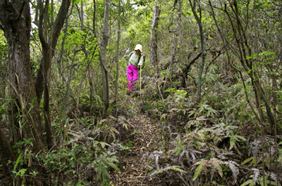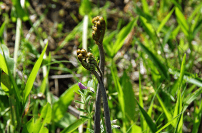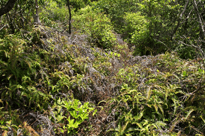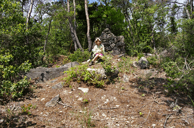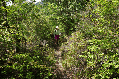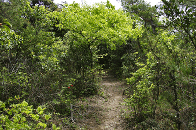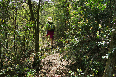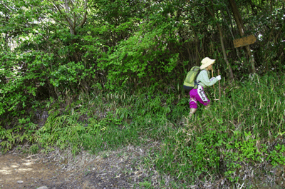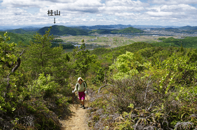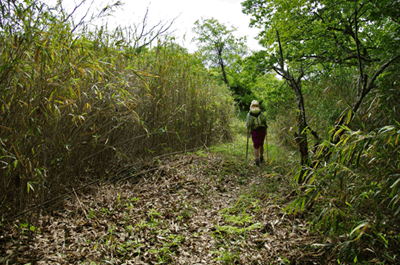 | (天気) | 午前は澄んだ空に白い雲が浮かんでいた。雲は少し多かった。気温はふもとで20℃、雑木の中では18℃ほどだった。北風が強く吹いており、その風が快かった。視界は良く澄んでいた。山頂は陽射しを受けており、気温も23℃まで上がった。その天気が昼を回ると、急速に曇り空へと変わって、気温も21℃まで下がってきた。 | ||