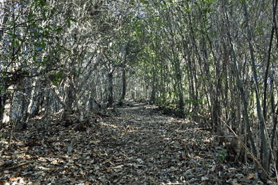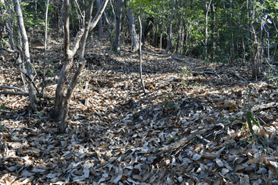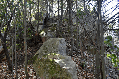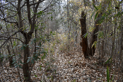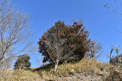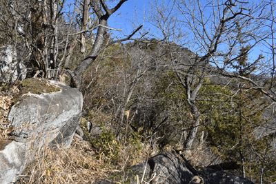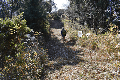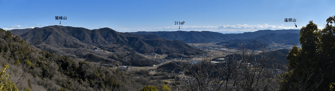 | 2026年に入って正月休暇中に岡山県の手頃な低山を登ることにした。そして「新岡山の山100選」を参考に選んだのが矢掛町の高妻山だった。向かったのは正月二日目。快晴の空だったが、矢掛駅の観光駐車場に着くと、身が切られるのではと思えるほどの冷たい風を受けた。それもなかなかの強風だった。矢掛駅で小休止を済ませてからスタートした。駅の東側にある高架下を通ると、高妻山への標識が現れた。登山口まで500mとあり、すんなりと登山口に向かえることになった。和田地区の住宅地を抜けて行く。緩やかな上り坂の車道を歩いて着いたのは、薬師堂だった。その薬師堂のそばにも駐車スペースがあったので、そこまで車を進めても良かったようだった。薬師堂の案内図があり、それを見て薬師堂の右手にある登山口に入った。その登山道が季節がら、すっかり落ち葉に覆われていた。急坂の上に地表も滑り易さがあり、これはけっこう慎重さを要した。一歩一歩を慎重に登るも、何度か軽くスリップした。登るうちに木々の隙間から南の風景が見えるようになり、南向かいの伽藍山の尾根や、足下には矢掛の町並みが眺められた。岩場も見られるようになり、そこは好展望地に見えたが、まずは山頂を目指した。尾根を登りきると、そこは「希望の丘」だった。高妻山森林公園のエリアに入ったようだった。その先は山頂まで丘の散策となり、前方に漸く山頂が望めた。幅広の登山道は芝地になっており、周囲はササが囲んでいた。そのササ地の周囲は樹林帯だったため、展望は無かった。標識が立っており、その標識では山頂は展望台となっていた。「町民の森」を過ぎると漸く山頂が近づくことになった。その山頂へと上り坂に入ると、小さな電波塔が現れた。そこを過ぎて山頂に到着した。山頂は樹林に囲まれて木陰になっており、その中央に石仏が彫られた石碑が立っていた。その手前に三等三角点(点名・大山)を見た。山頂は木陰になっているためにけっこう冷えており、気温を見ると2℃を下回っていた。その山頂は展望台のはずだったが、標識はあるものの木々がすっかり視界を塞いでいた。展望があったのはずいぶん以前のことだったのではと思えた。それでも僅かな木々の切れ目からは矢掛町北部の尾根が望めた。少々がっかりした気持ちで昼休憩を済ませると、下山に移った。下山は往路を戻るのみ。森林公園の枝道には入らず、真っ直ぐ希望の丘へと戻った。希望の丘は陽射しをいっぱい受けており、改めて休憩をとった。そしておもむろに矢掛駅への道に入った。その下山では、往路では立ち寄らずに通り過ぎた大岩の展望地に立ち寄った。その大岩は六畳岩と呼ばれているようで、一番大きな岩の上には立てなかったが、それでもけっこう展望を楽しめた。それは南から西までの広い眺めだった。六畳岩を離れると、ひたすら足下に注意して登山口へと戻った。登山口に着くと後は車道を歩いて矢掛駅に戻るのだが、いつしか上空は雲が増えており、空の半分以上に広がっていた。 (2026/2記) |