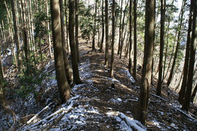 <登山日> | 2008年1月19日 | 11:13スタート/11:43尾根に着く/11:55〜12:06山頂/12:14〜26「No.58]鉄塔/12:34山頂/12:58林道に下り着く/13:04エンド。 | |