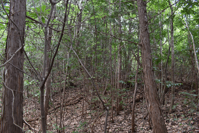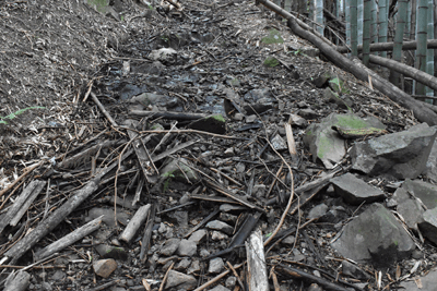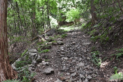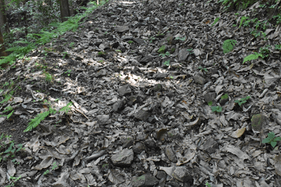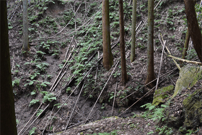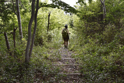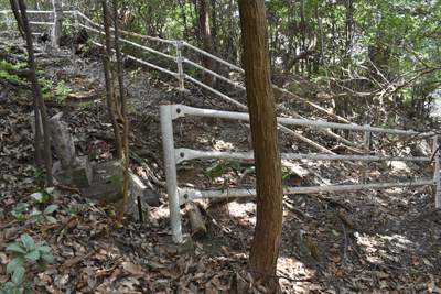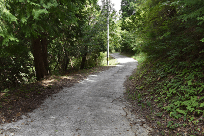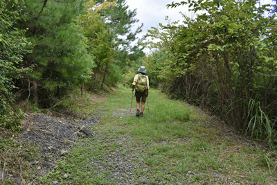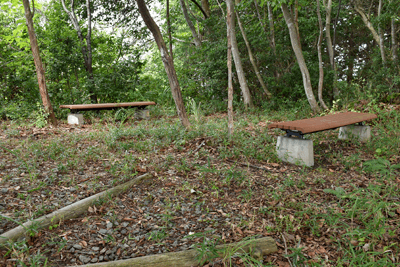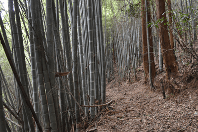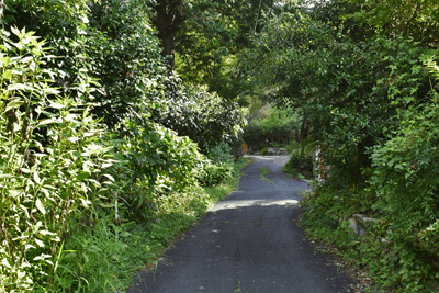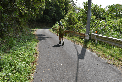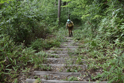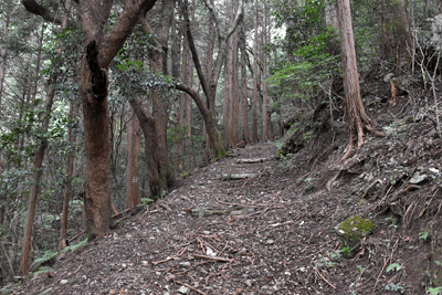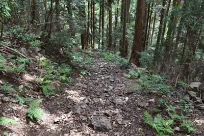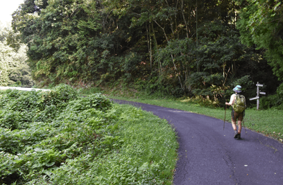 津山市北部に佇む黒沢山は、岡山県の山を紹介するガイドブックには必ず載っている山で、山頂そばには名刹満福寺が建っている。その満福寺まで車道が通じているが、「分県登山ガイド岡山県の山」では南麓にある昭和池からのコースが紹介されていた。その紹介コースに従って登ることにした。向かったのは2025年9月の第一日曜日のこと。2025年は6月の終わり頃から猛暑が始まり、7月8月と続いて9月に入っても収まらなかった。この日も津山市は35℃の予想だった。スタート地点となる昭和池に着いたのは9時過ぎ。池の南東の位置に駐車スペースがあり、そこから東原集落に通じる車道の入口には「黒沢山徒歩登山道」の標識が立っていた。その車道は昭和池の東岸側に着いており、車道歩きをスタートして12分ほどで東原集落に入った。黒沢山の名は見なかったが、満福寺の標識に従うと登山道に入った。車が通れるほどの道幅があったが、車が通った形跡は無かった。小さな沢に沿っての登りで、周囲は竹林だったり植林地だったり、ときに自然林に替わった。始めは易しい道だったが、次第に荒れてきた。表土が長年の雨で流されており、小石が多くあって歩き難くなっていた。これは全くファミリー向きでは無く、黒沢山登山道の標識があるのだから今少し整備が必要ではと思えた。道幅は広いままで、沢に沿っていた餅は途中で沢そばを離れてつづら折れとなった。道の歩き難さは変わらずで、周囲も植林地だったり、また竹林が現れたりした。気温は高くは無いものの湿度は高く、大汗をかいての登りで、何度か小休止をとった。漸くの思いで山上に出ると、登山道はダート道の車道に合流して車道歩きとなった。そこは標高580mの位置で、緩やかな車道を北へと歩いて行く。クサリ止めを越すことになり、その先は舗装路だった。黒沢山山頂へと導く標識があり、それに従った。途中で右手に車道が分岐しており、そちらは満福寺に通じる道と思われた。山頂を目指して直進する。最後は車道を離れて丸太の階段道を登った。そして着いた山頂は最高点の668mピークではなく、三角点ピークだった。そこは平らに開けており、ベンチも置かれていた。中央に四等三角点(点名・黒沢)があり、少し離れた位置には電波塔が建っていた。休むには良い所だったが、展望は無かった。かろうじて東の方向に668mピークを見る程度だった。まずはベンチに座って大汗の体を休めた。ガイドブックでは三角点ピークを山頂としており、最高点は登山対象としていなかったが、遠くから見る山頂はあくまでも最高点だったので、最高点にも立つことにした。その最高点を巻く形で三角点ピークに着いたので、車道を戻ることになった。車道側からは取り付けそうなところは無く、満福寺への道に入って南側からピークを目指すことにした。満福寺への道を進むと、護摩堂のそばに出た。最高点の方向は遍路道が作られていた。その遍路道に入ったものの、最高点までは通じていなかった。そこで適当な位置で遍路道を離れて雑木ヤブに入った。イバラも混じるヤブだったが、長くも歩かず最高点ピークに到着した。すっかり雑木に囲まれて、単なるヤブのピークだった。すぐに引き返した。歩き易そうな所を選びながら下ると、すんなりと遍路道に合流した。そばの石仏は第六十四番前神寺だった。次は満福寺を目指した。護摩堂のそばを通って下り坂に入った。満福寺の奥ノ院のそばを通ると石段となり、満福寺の境内に出た。本堂があり、鐘楼や庫裏も見た。山頂に近い位置の寺だったが、有人の寺で飼い犬も見た。その境内で目に付いたのが展望台で、そこに立つと津山市街が一望出来た。但しこの日の視界は少しうっすらしていた。展望台は屋根がありベンチも置かれていたので、休むには良い所だった。涼しい風が通っており、三角点ピークよりもずっと涼しかった。風の快さを楽しみながら休憩を終えると、下山に移った。山上の車道へと20メートルほど登り返すと、往路コースを戻った。車道から登山道に入ると、再び荒れた山道歩きだった。足下に注意しながら下った。登山道を下り終えて東原集落に入ると、朝とは違って真夏の暑さだった。気温は35℃近くありそうだった。後は暑さを我慢しながら昭和池そばの駐車地点へと戻って行った。 (2025/10記) |