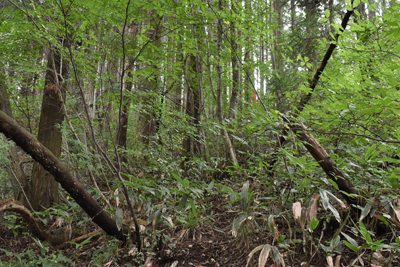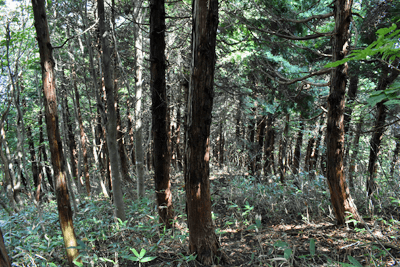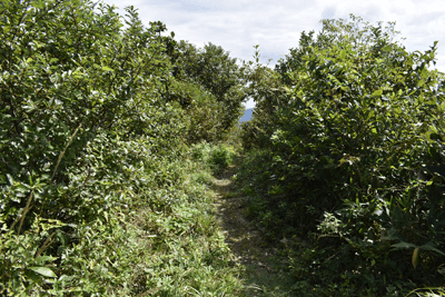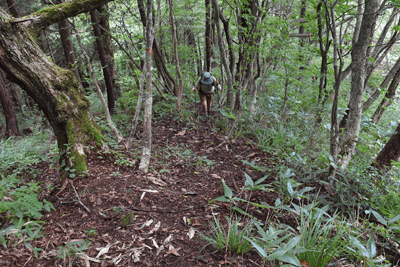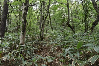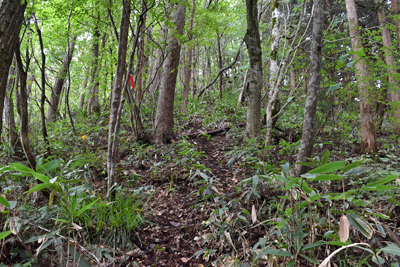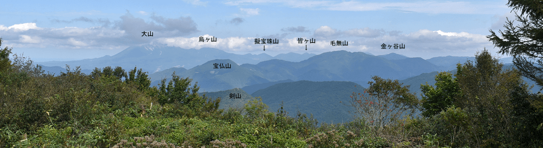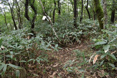 | (天気) | 始めは曇り空。山頂に近づく頃より陽射しが現れる。山頂では雲の多い晴れだった。山頂の気温は19℃。風は弱かったが、十分に涼しく爽やかだった。視界は良かった。 | ||