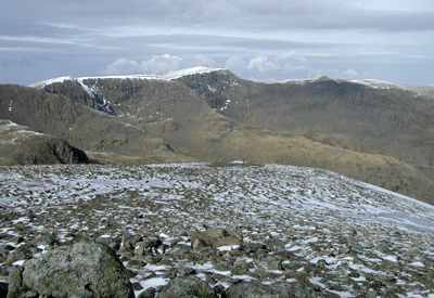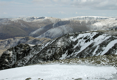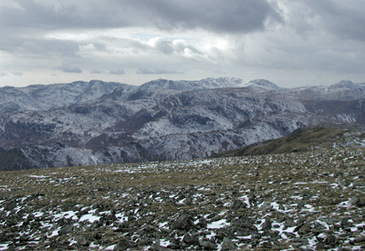 (天気) | 朝方は少し雲が見られる程度で良く晴れていた。昼が近づくと徐々に西から北にかけて薄雲が広がって来た。尾根には肌寒い風が吹いており、前日に降った雪が所々で残っていた。[Grate Rigg]までは上空は青空だったが、山頂に近づくほどに上空にも雲が広がり出した。下山時はほぼ薄曇りの空になっていたが、それ以上に悪化することは無かった。視界はまずまず澄んでいた。 | ||